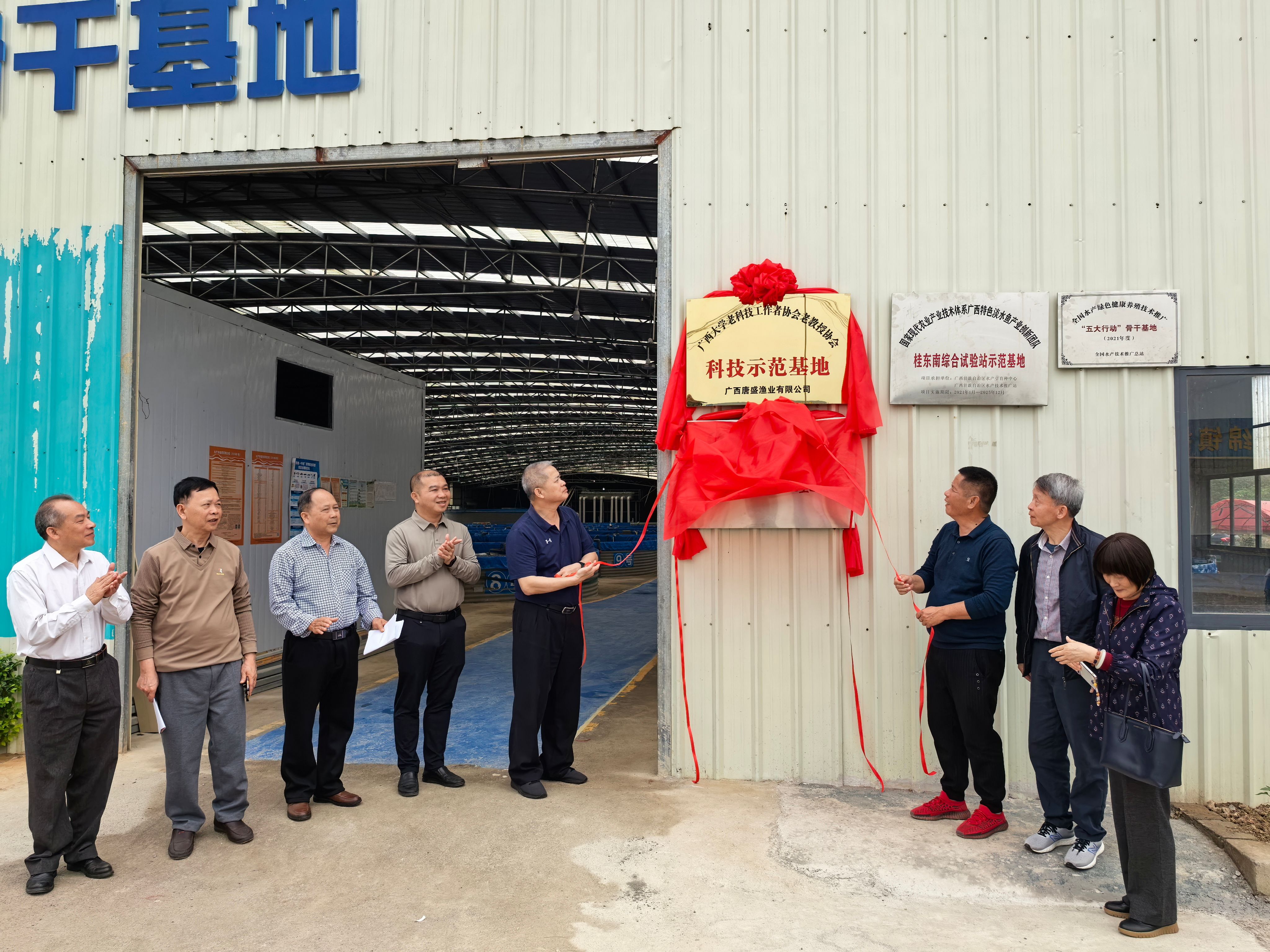 4月8日,我校老科学技术工作者协会、老教授协会(以下简称“两老”协会)与广西唐盛渔业有限公司共建科技示范基地揭牌仪式在玉林市福绵区举行。校党委常委、副校长刘向,广西老科协副会长蒋应时出席仪式。