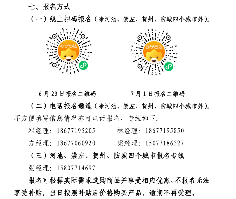 离退处转上级通知:为贯彻自治区关于稳消费系列政策措施﹐区商务厅联合教育厅通过广西苏宁易购开展第二届“绿色节能·关爱职工”千万补贴闭店家电专场活动,有需求的离退职工请到离退处办公点宣传栏或网页关注通知,提前扫码报名,凭邀约短信进店购物享受补贴,活动时间为6月23日、7月1日当日10点——24点。(点击附件了解详情)