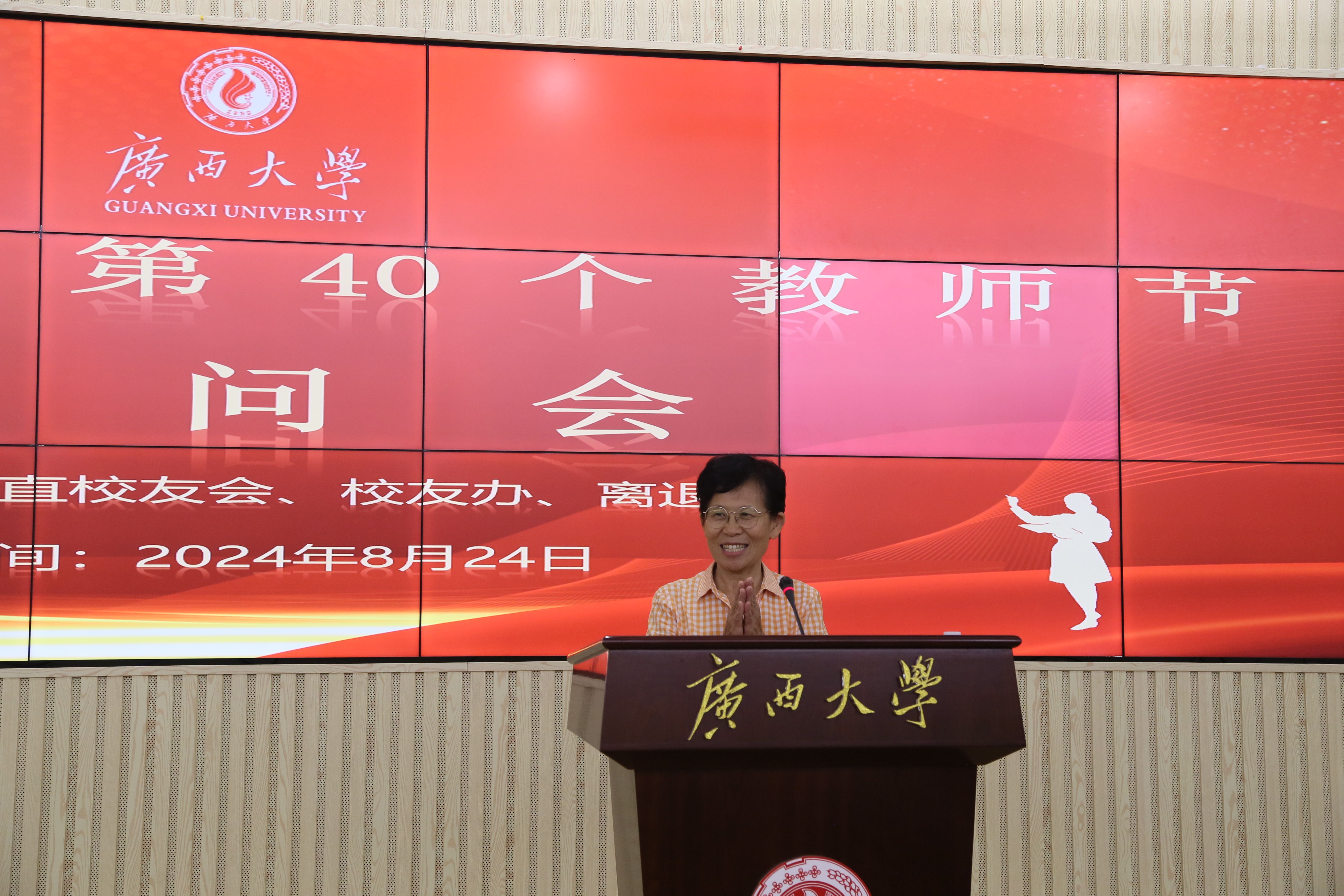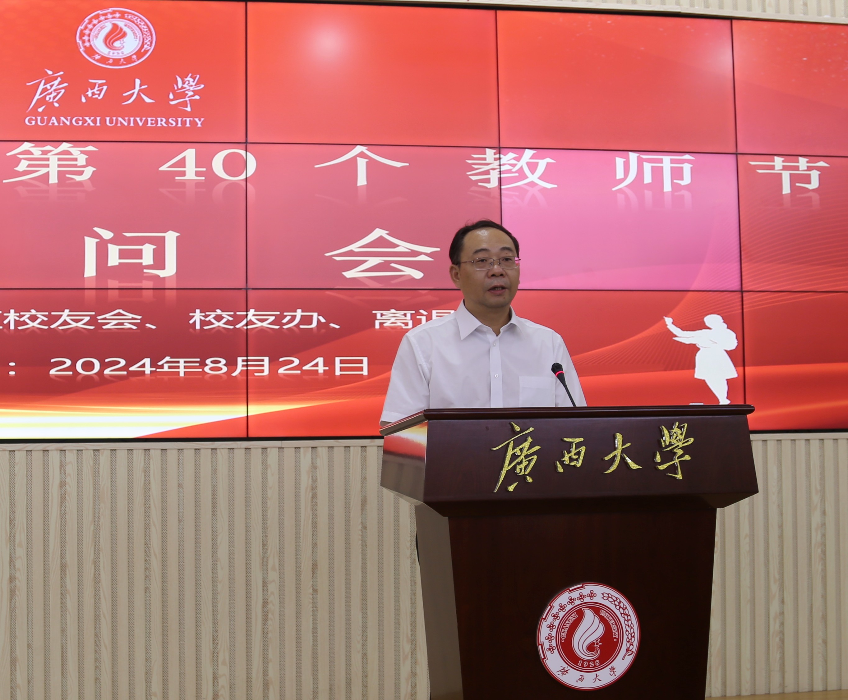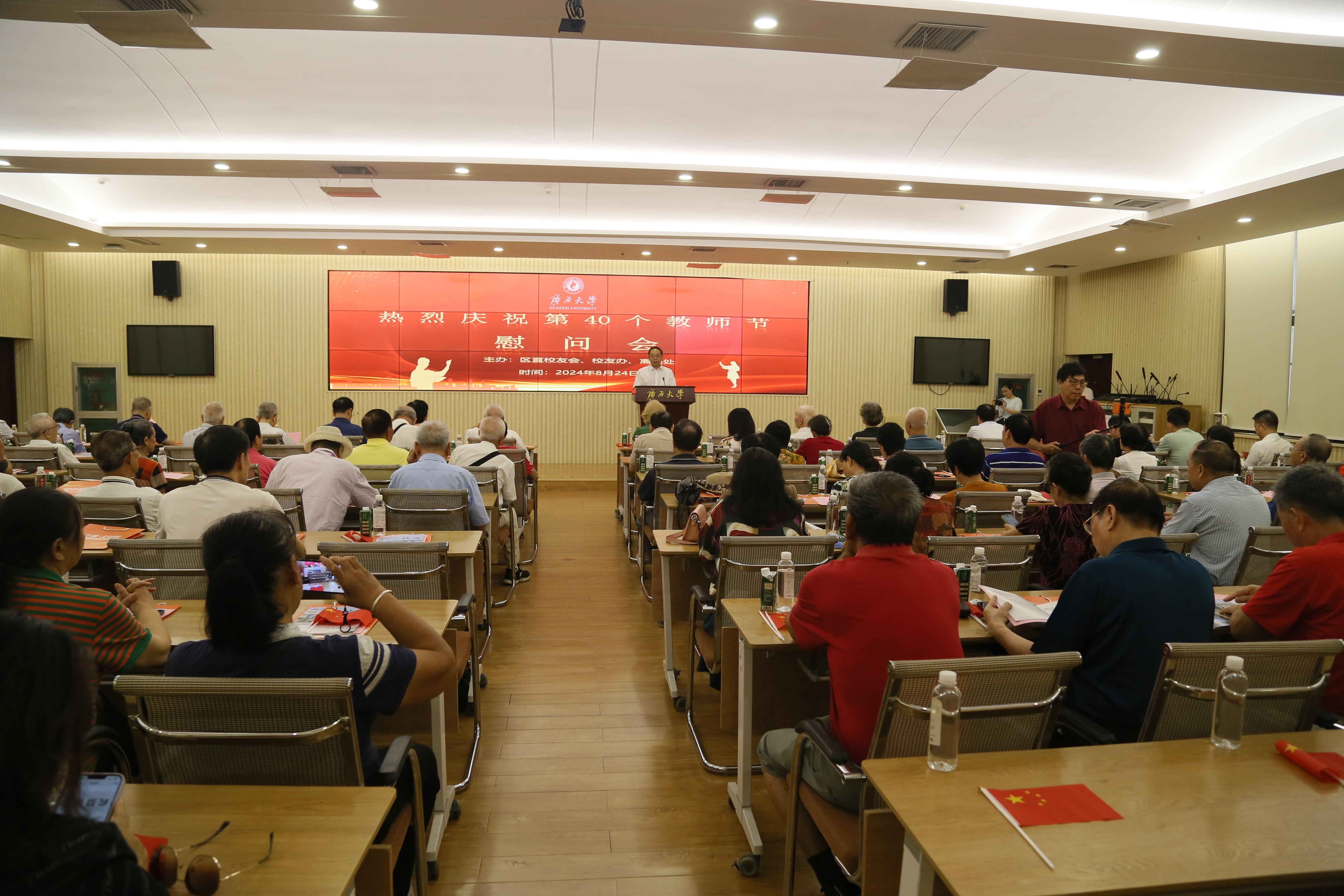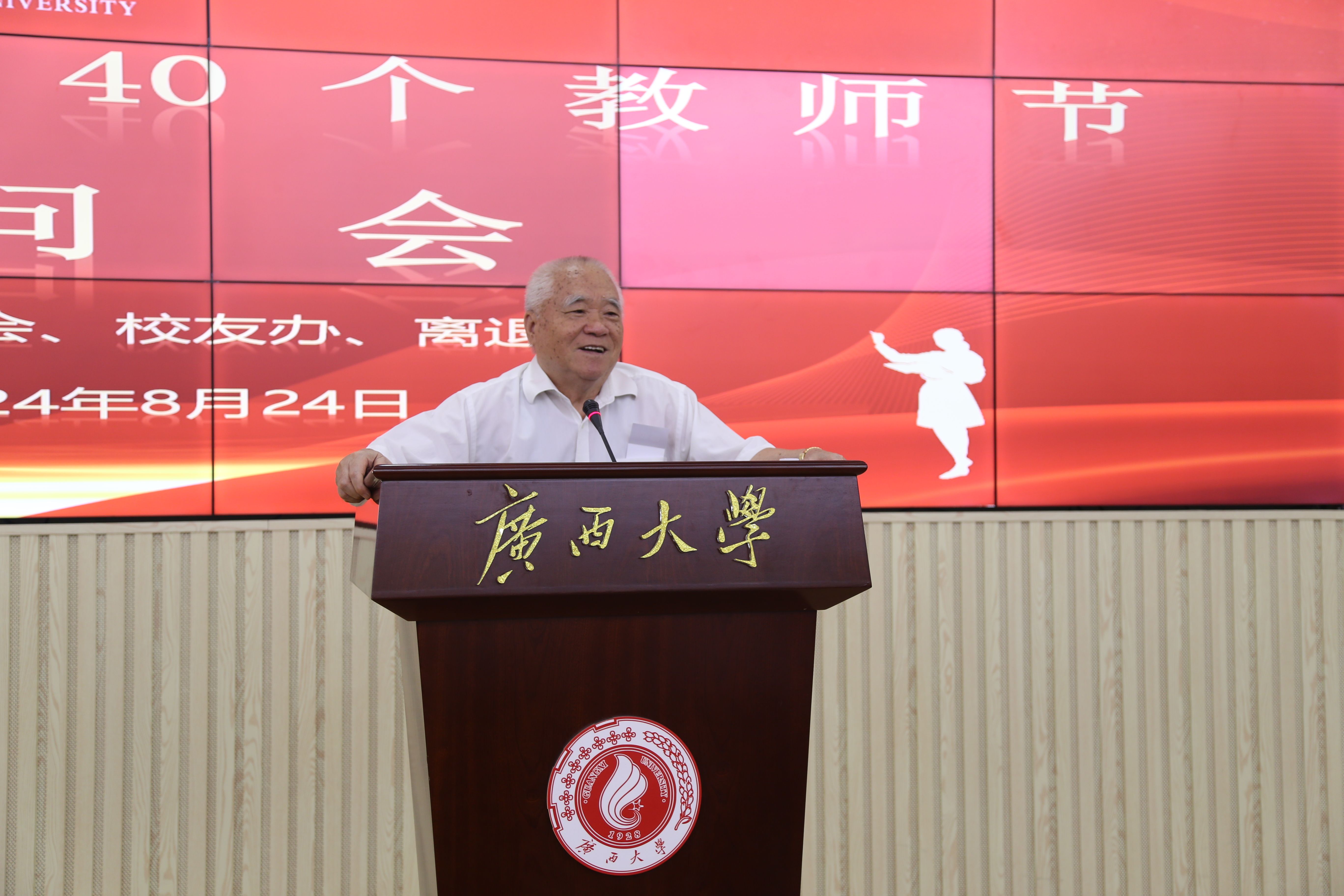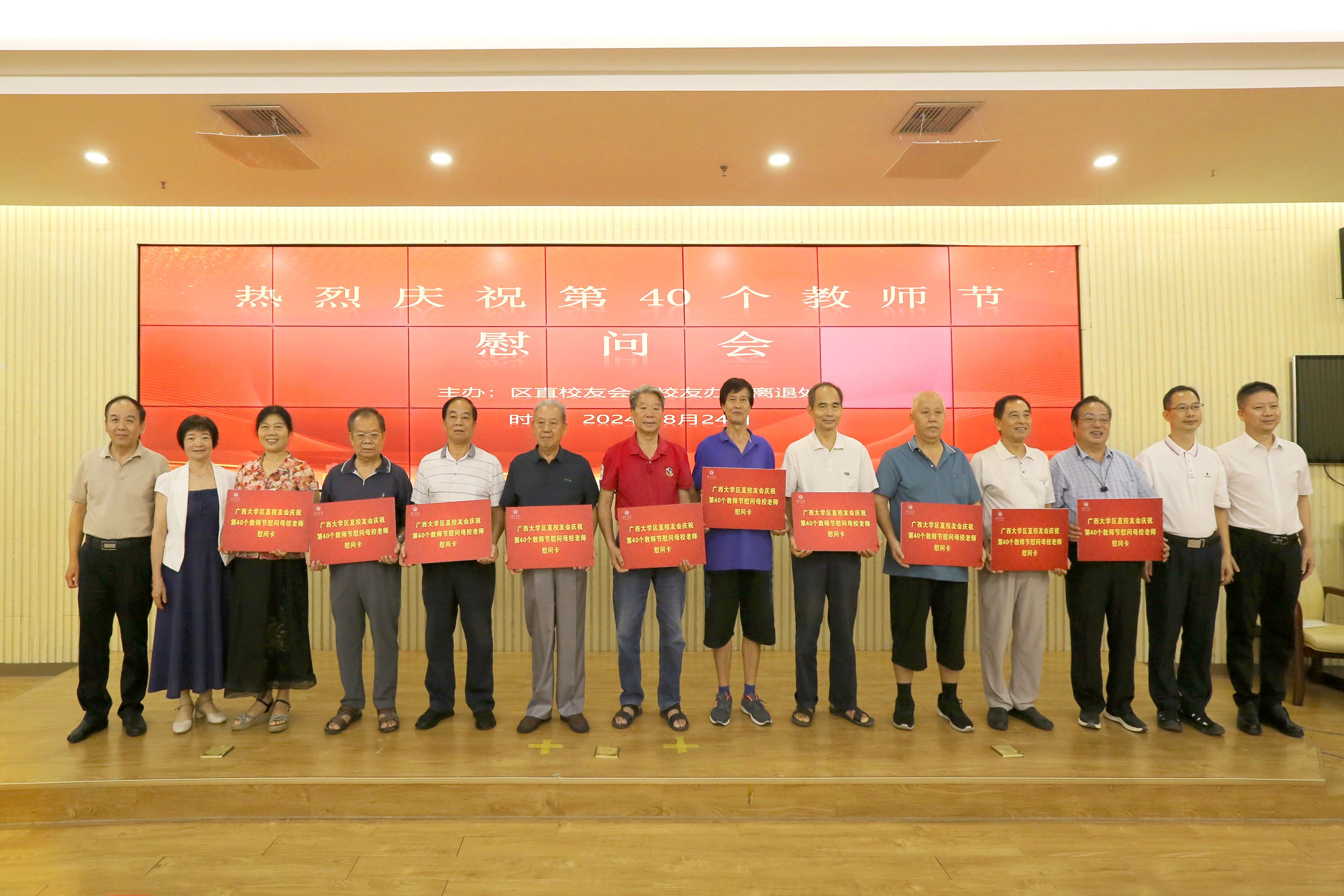 8月24日,在第40个教师节即将到来之际,区直校友会、校友工作办公室和离退休工作处联合开展2024年教师节离退休教师慰问活动。校党委常委、副校长于文进参加活动并代表学校向参加活动的老师们致以崇高的敬意和诚挚的节日祝福。活动由区直校友会执行会长经克主持。