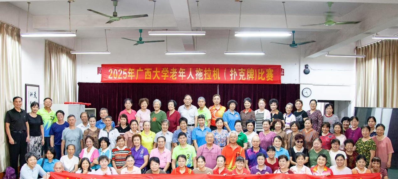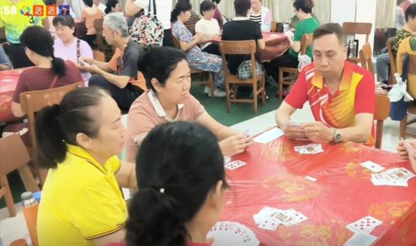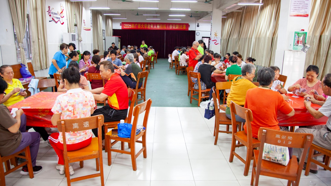 7月4日,我校老年文体协会在东校园离退休教职工活动中心举行2025年老年人“拖拉机”扑克牌比赛。比赛按照抽签分为6组,采用单淘汰赛制,共有24支队伍参赛。