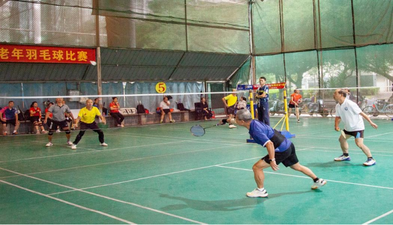 我校老年文体协会体育分会副主席龙军主持开幕环节并强调了比赛意义和参赛安全事项。比赛在紧张有序中开始,分为男子双打、女子双打、A组混合双打、B组混合双打,每队可参加两项,赛制采用淘汰制决出名次。