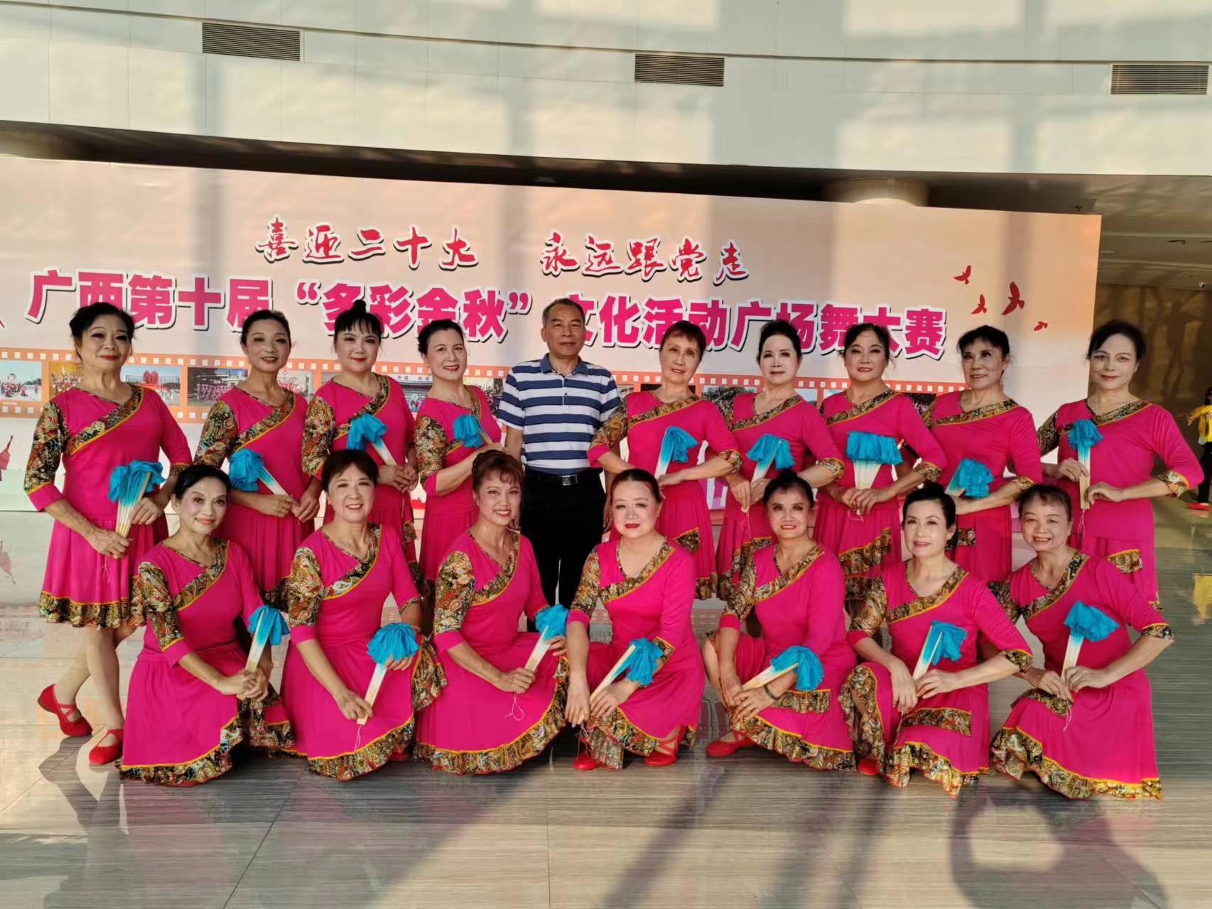 在庆祝党的二十大胜利召开之际,由自治区党委老干部局、自治区离退休干部党工委举办的“喜迎党的二十大 永远跟党走”——广西第十届“多彩金秋”广场舞大赛暨广西第十届“多彩金秋”文化活动闭幕式10月28日在贺州文化艺术中心落下帷幕。
