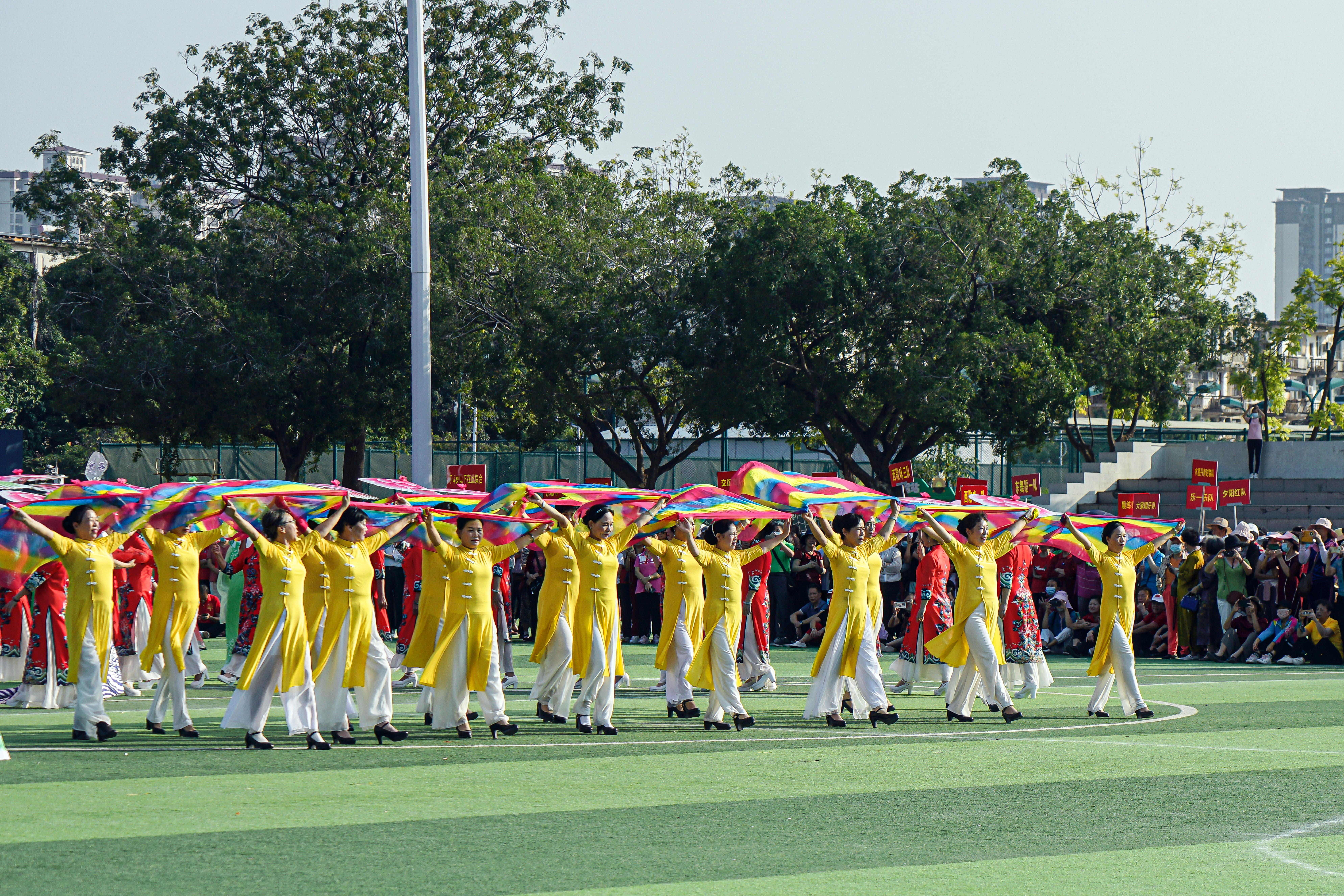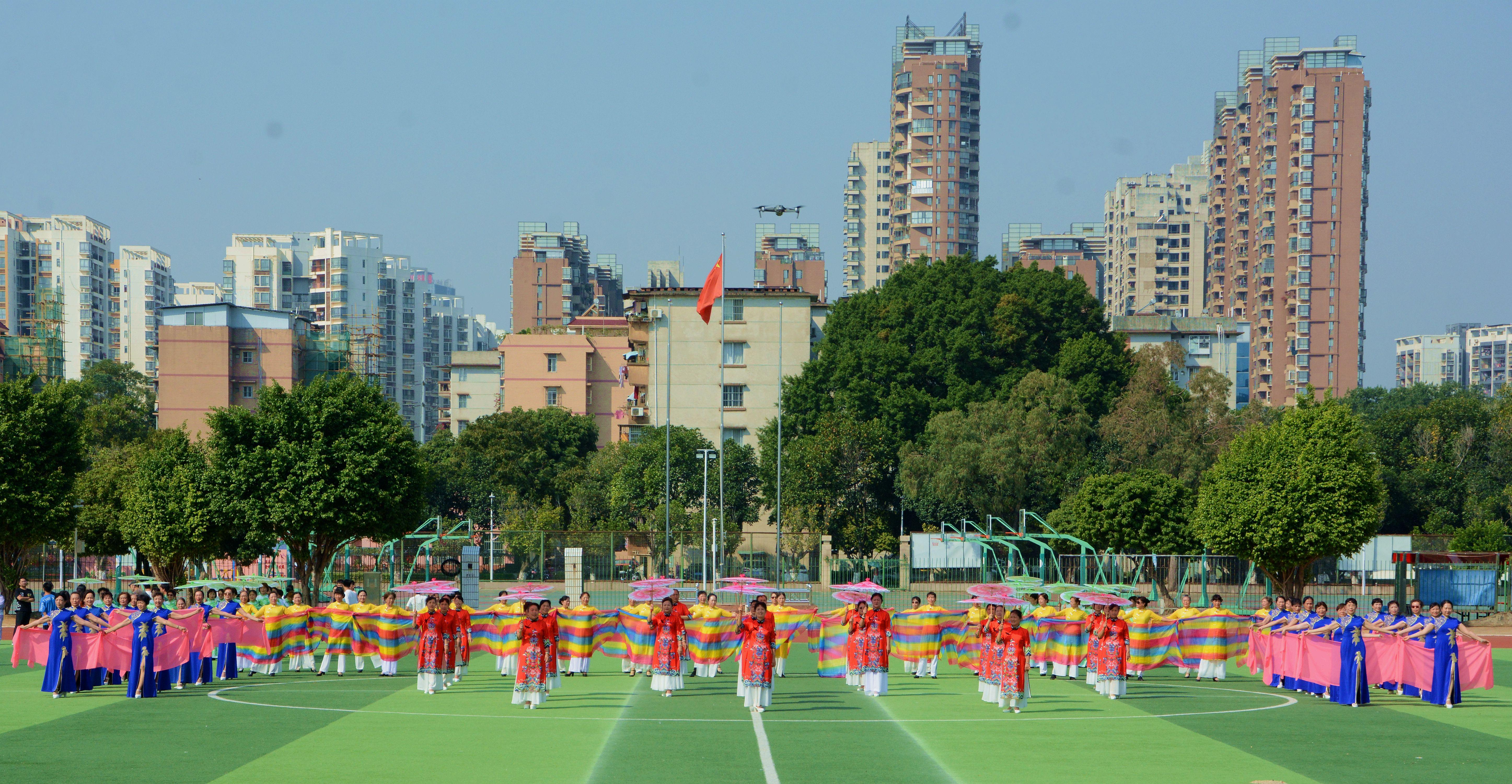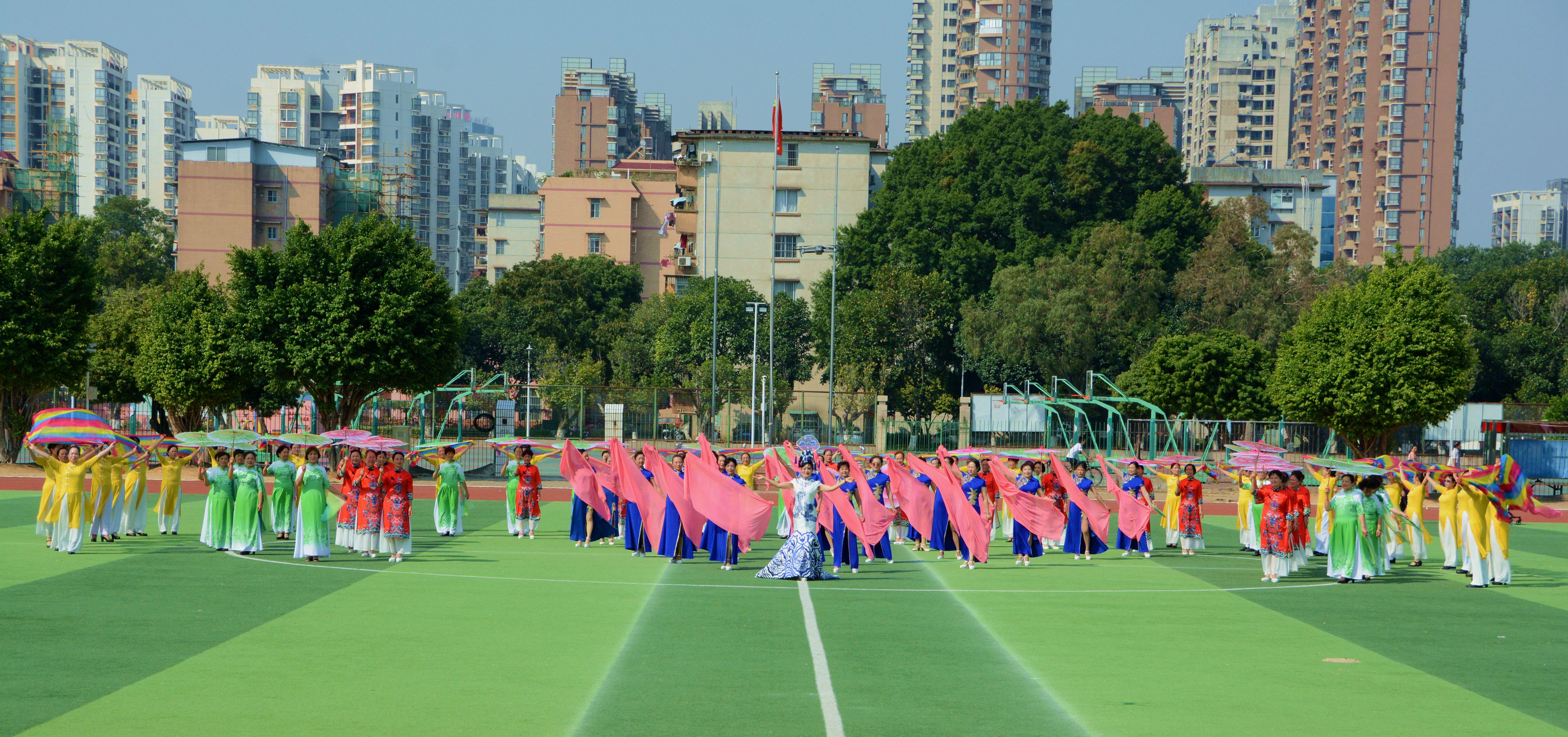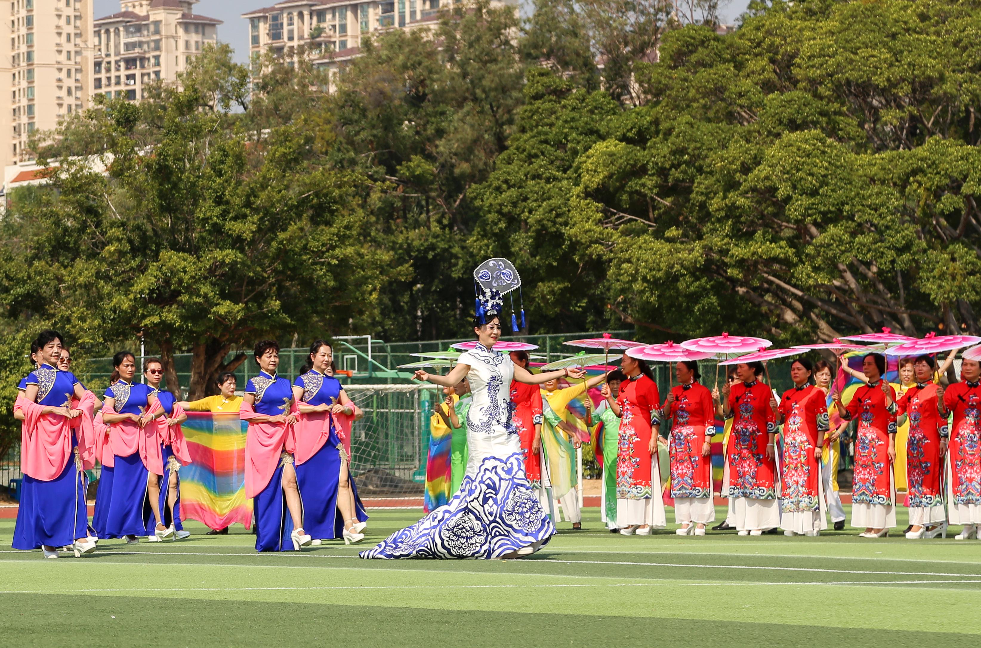 为庆祝党的二十大胜利闭幕,展现新时代巾帼风采,10月26日上午,我校老年大学在西校园田径运动场举行了“庆祝党的二十大,巾帼展芳华”百人旗袍秀展演。112名老年大学女演员身着红、蓝、黄、绿各式旗袍,神采飞扬,在深情的《相聚中华》音乐声中款款走来,优美的身姿,筑起了一道道美丽的彩虹,尽显老年大学的夕阳红,传递和弘扬了中华民族的旗袍文化,抒发了老年大学学员爱党爱国的情怀,展现了英国上市公司365离退休教职工满满的获得感和幸福感。
