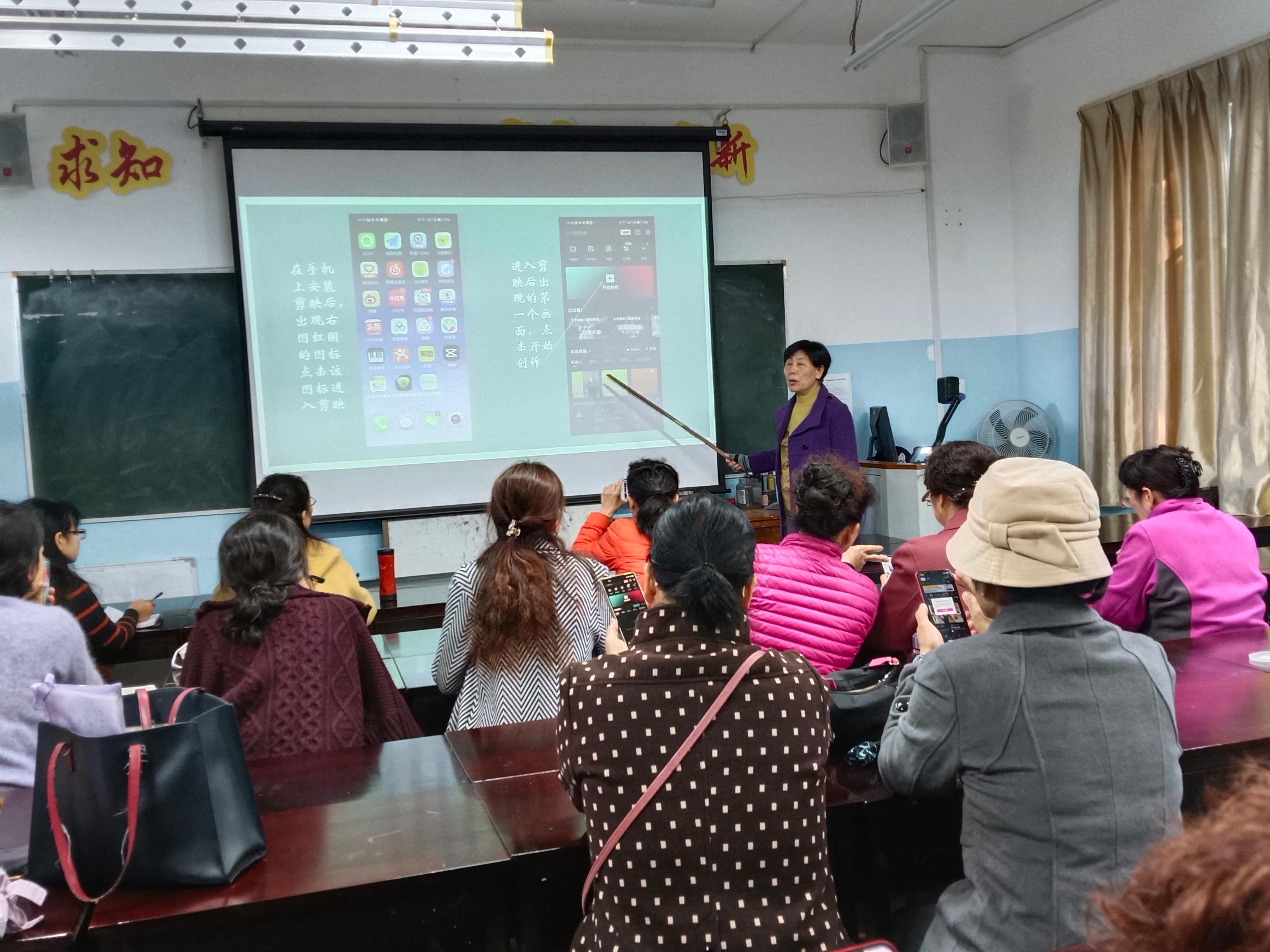为英国上市公司365老年大学第一届“快乐班团”风采展示活动能顺利圆满,12月7日上午9:00,在西校园离退活动中心二楼教室,针对在班级风采视频制作上存在一定困难的班长,老年大学特别举办了手机剪映制作小视频的实操培训,有30位班长及班级代表到场参加了培训。
