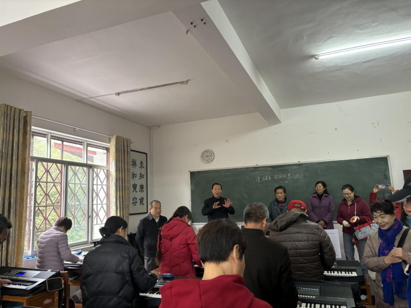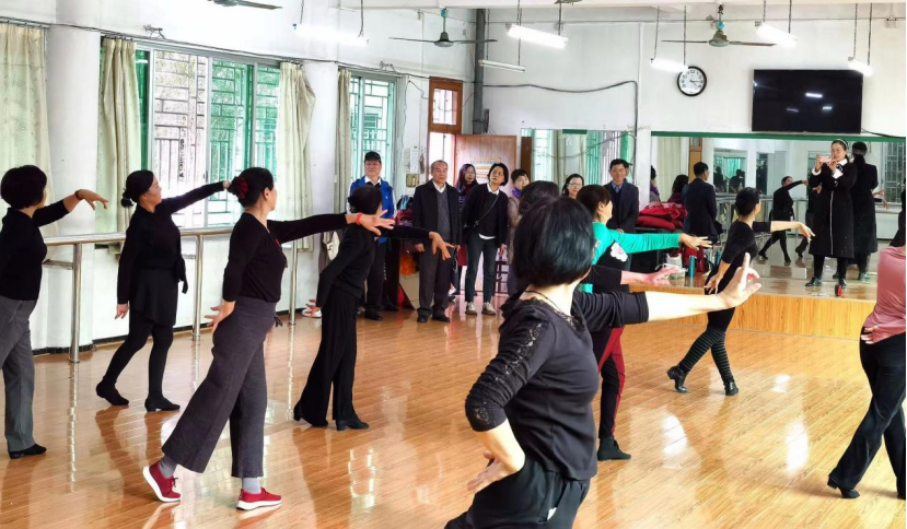 调研组一行分别实地参观阳朔县老年大学、广西师范大学老年大学、桂林电子科技大学老年大学的办学场地、各专业教室、教学设施,并实地观摩了正在进行的声乐、二胡、电子琴、绘画、舞蹈等课堂教学。