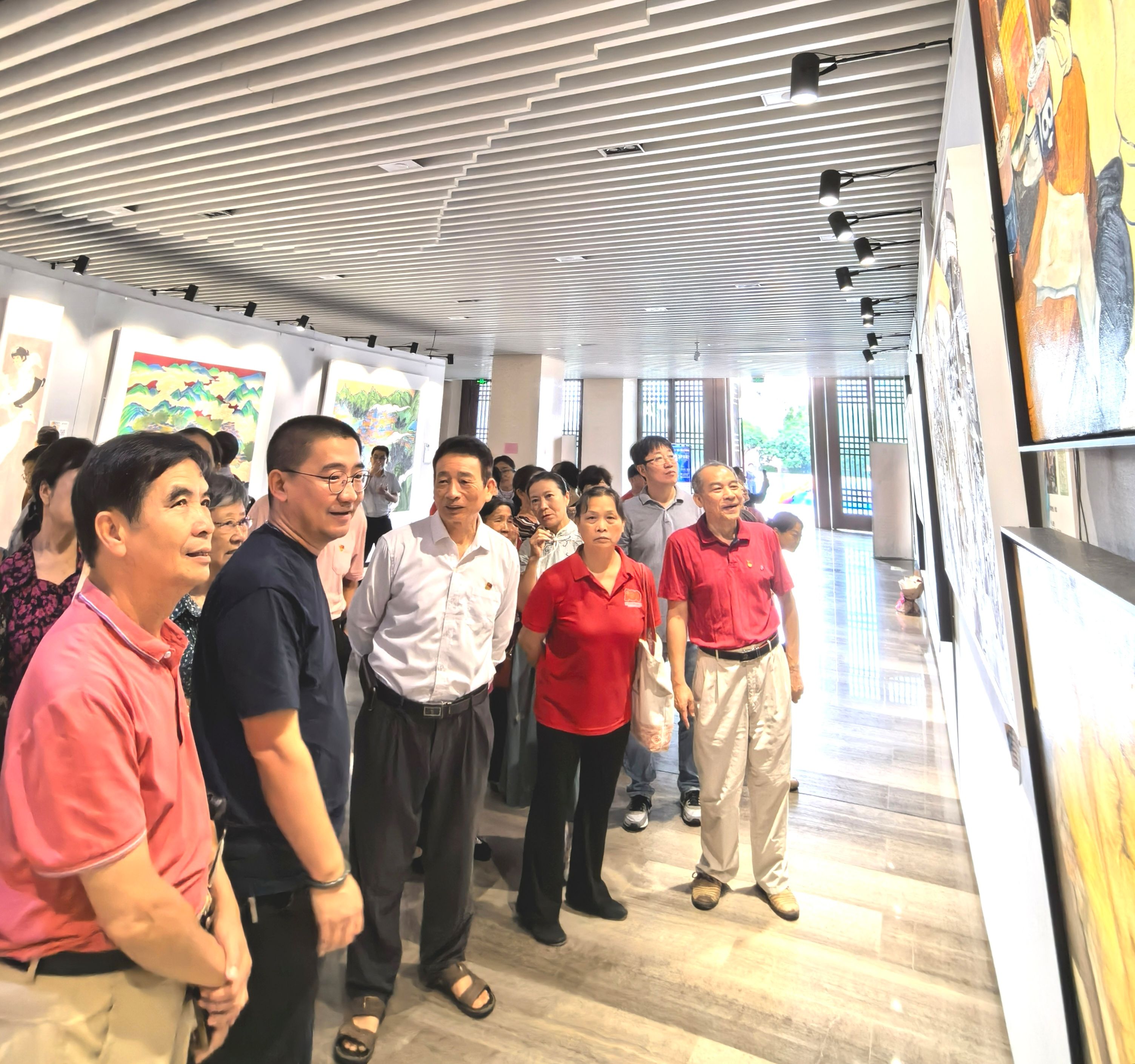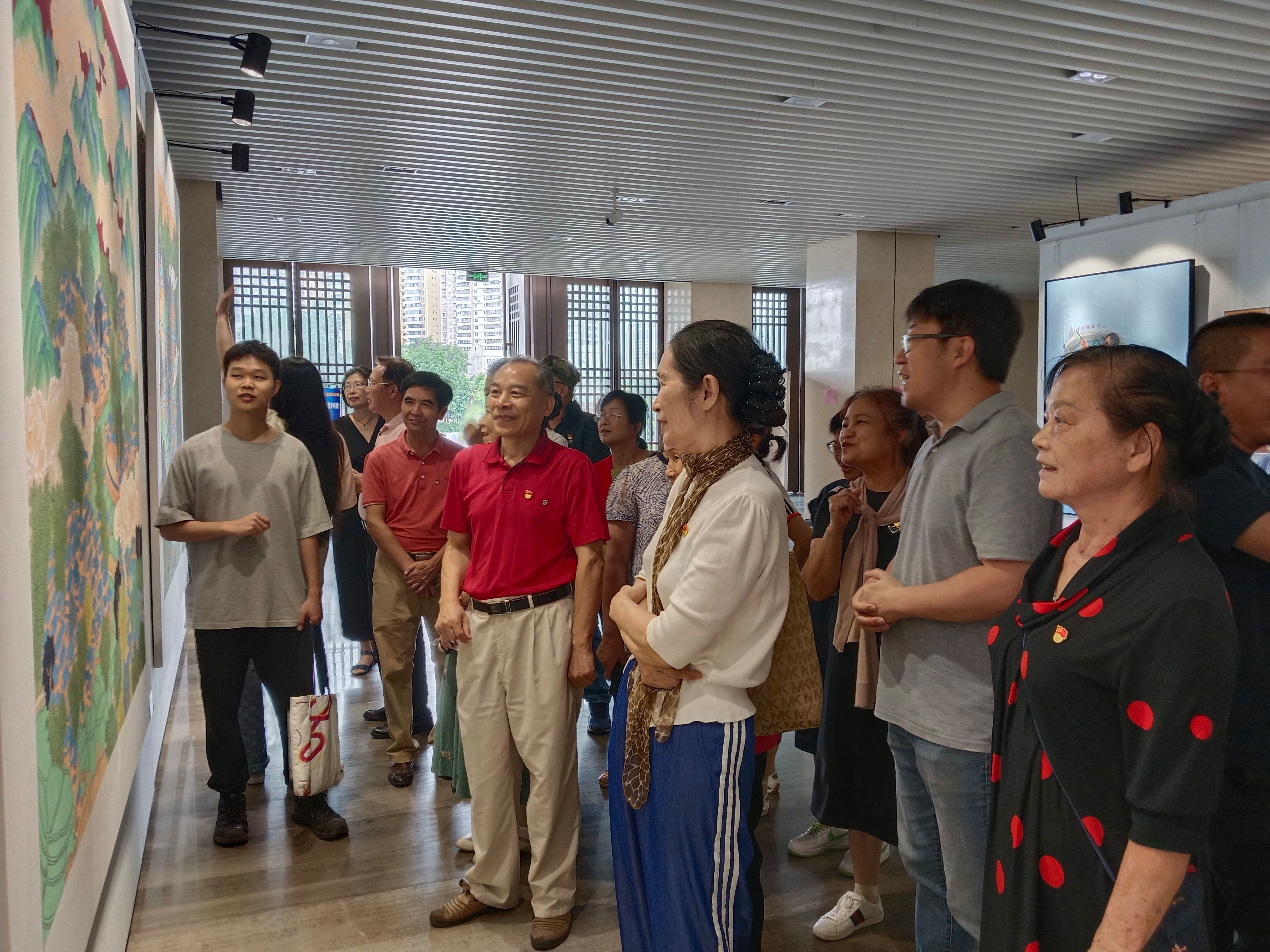 2024年5月31日上午,老年大学临时党支部组织各课程班级党员到学校汇学堂开展“艺心向党 以美育人”主题党日活动,参观具有广西特色的“民族・边疆・海洋”美术毕业作品展和“成长・同行”艺术设计毕业作品展。活动旨在让党员学员感受艺术的魅力,丰富党员的精神文化生活,增强党员的文化修养和文化自信。离退处副处长张浩、老年大学常务副校长黄四弟及老年大学各班级46名党员参加了主题活动。