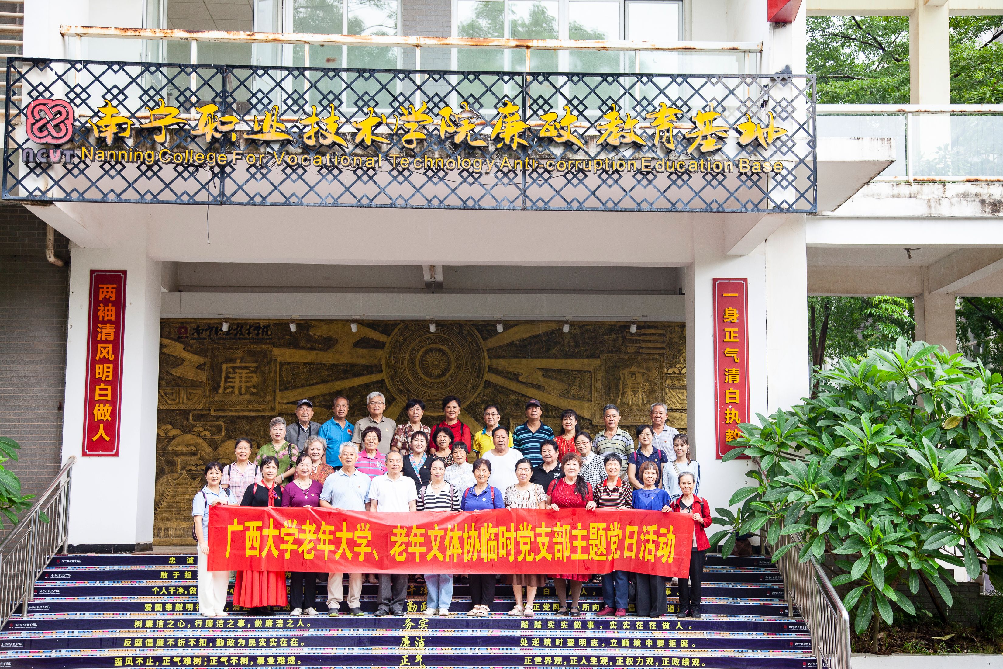 6月26日,英国上市公司365老年大学和老年文化体育协会临时党支部,组织骨干党员近四十人到南宁职业技术大学廉政教育基地,开展廉政教育主题党日活动。