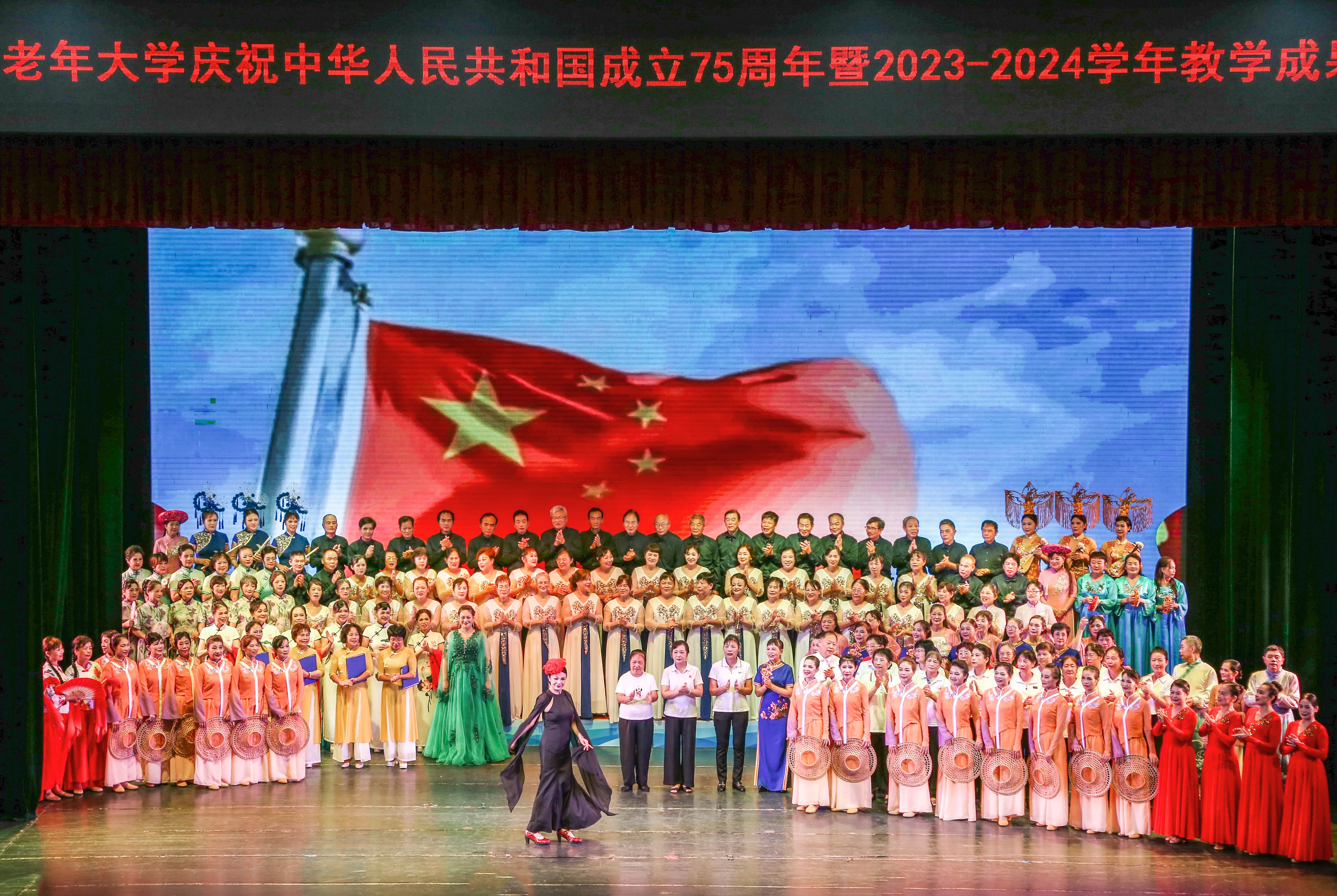 7月5日,阳光如金,为庆祝新中国成立75周年,充分展示2023-2024学年教学成果,我校老年大学在大礼堂隆重举行了文艺汇演活动。此次活动不仅为老年学员们提供了一个展示才艺、交流学习的平台,更是他们以老年人的新时代精神风貌迎接和庆祝新中国成立75周年的献礼。