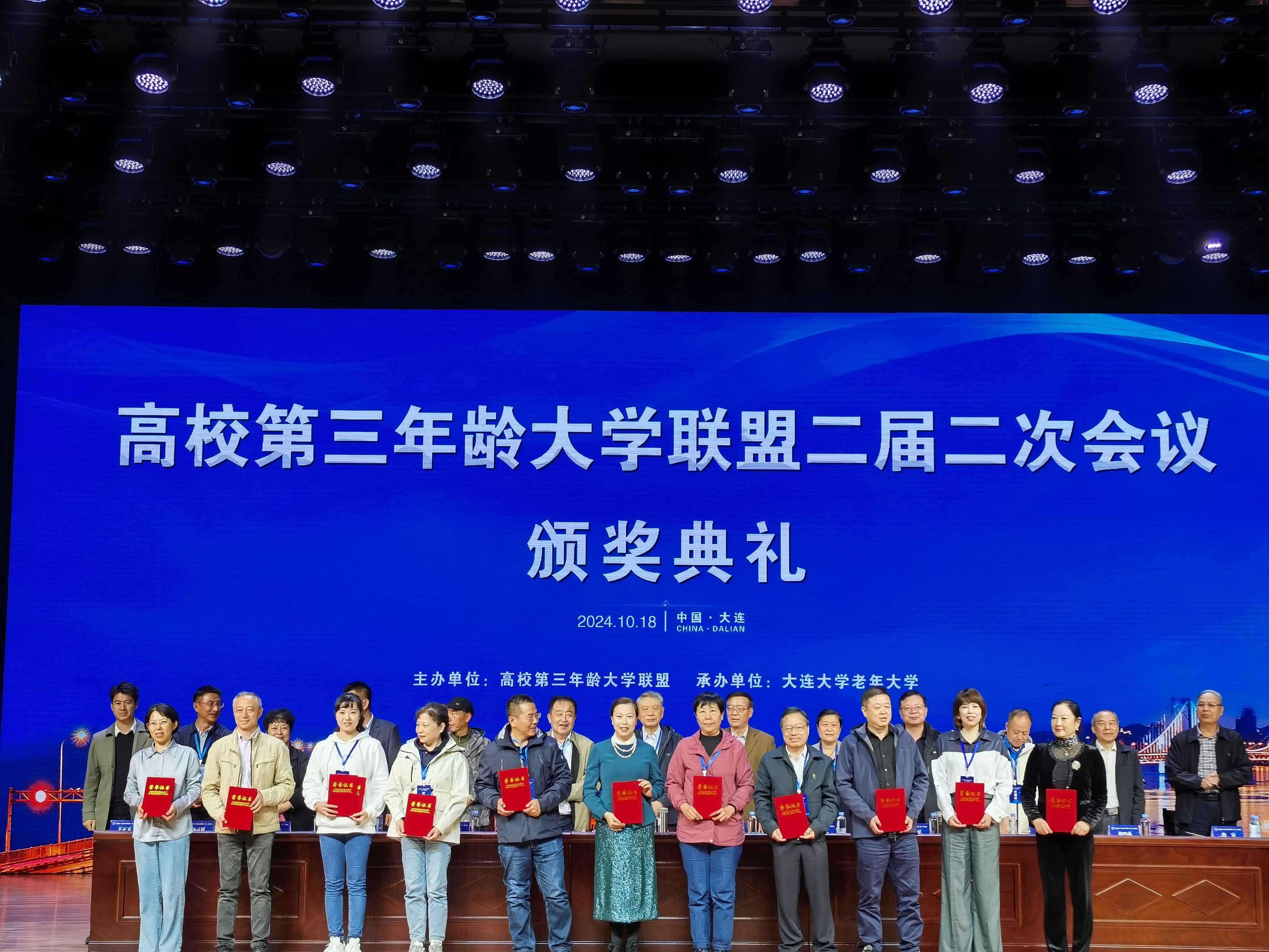 10月17至18日,高校第三年龄大学联盟二届二次会议在辽宁省大连市召开。会上进行了精品课程评选,共有20个单位30门课程申报精品课程。经过陈述展示、代表评审、评审小组审核、联盟理事长会议审定,共评出精品课程一等奖12门、二等奖18门。我校老年大学课程“国画山水基础”“中国古典舞”分别获得一等奖和二等奖。