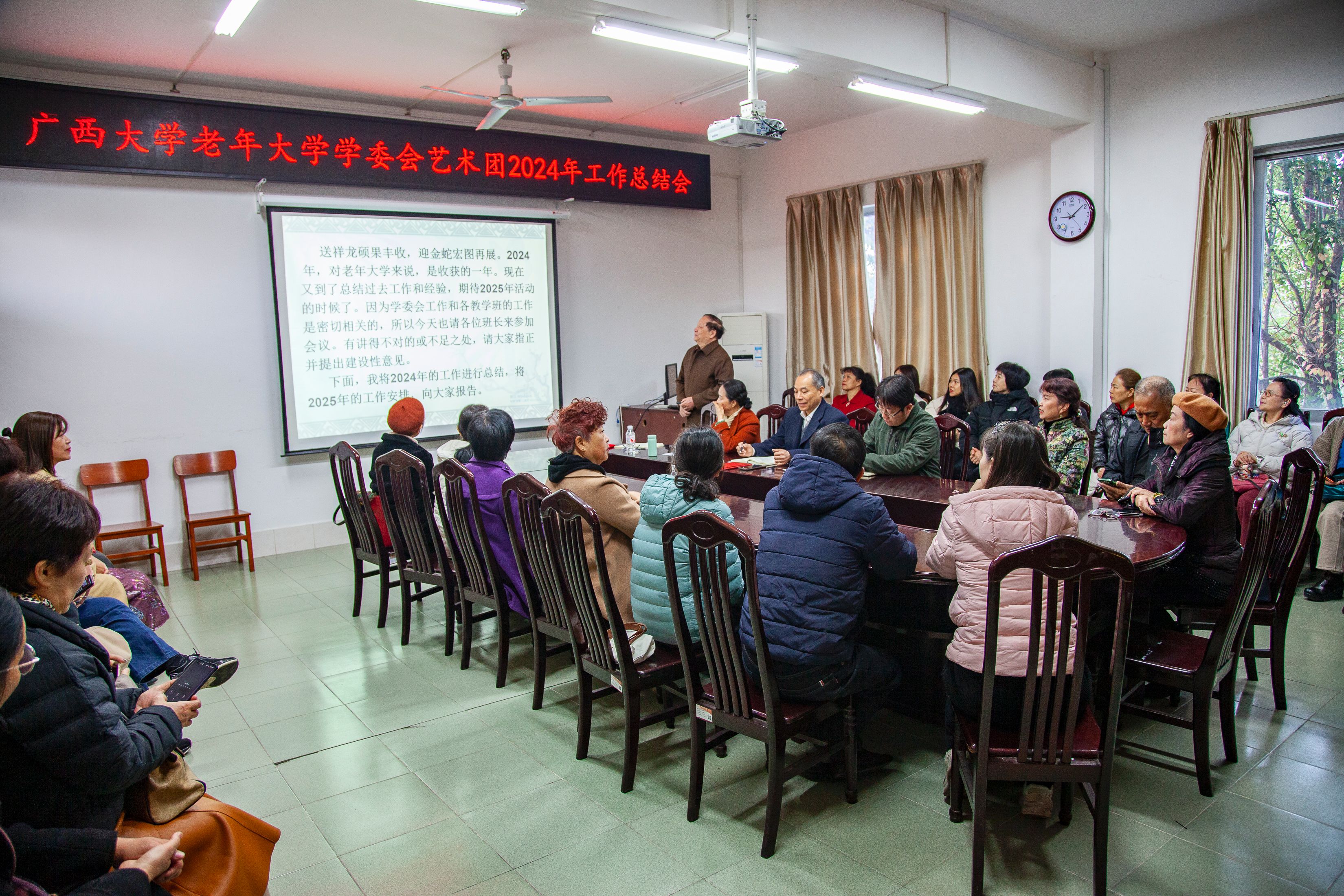 春华秋实,岁序更新。2025年1月9日,我校老年大学在西校园离退休教职工活动中心三楼会议室召开了学委会艺术团2024年工作总结会,校离退休工作处副处长张浩、老年大学常务副校长黄四弟、副校长董毅宏及学员自主管理委员会全体委员、各艺术分团正副团长及各专业班级班长参加了此次会议。