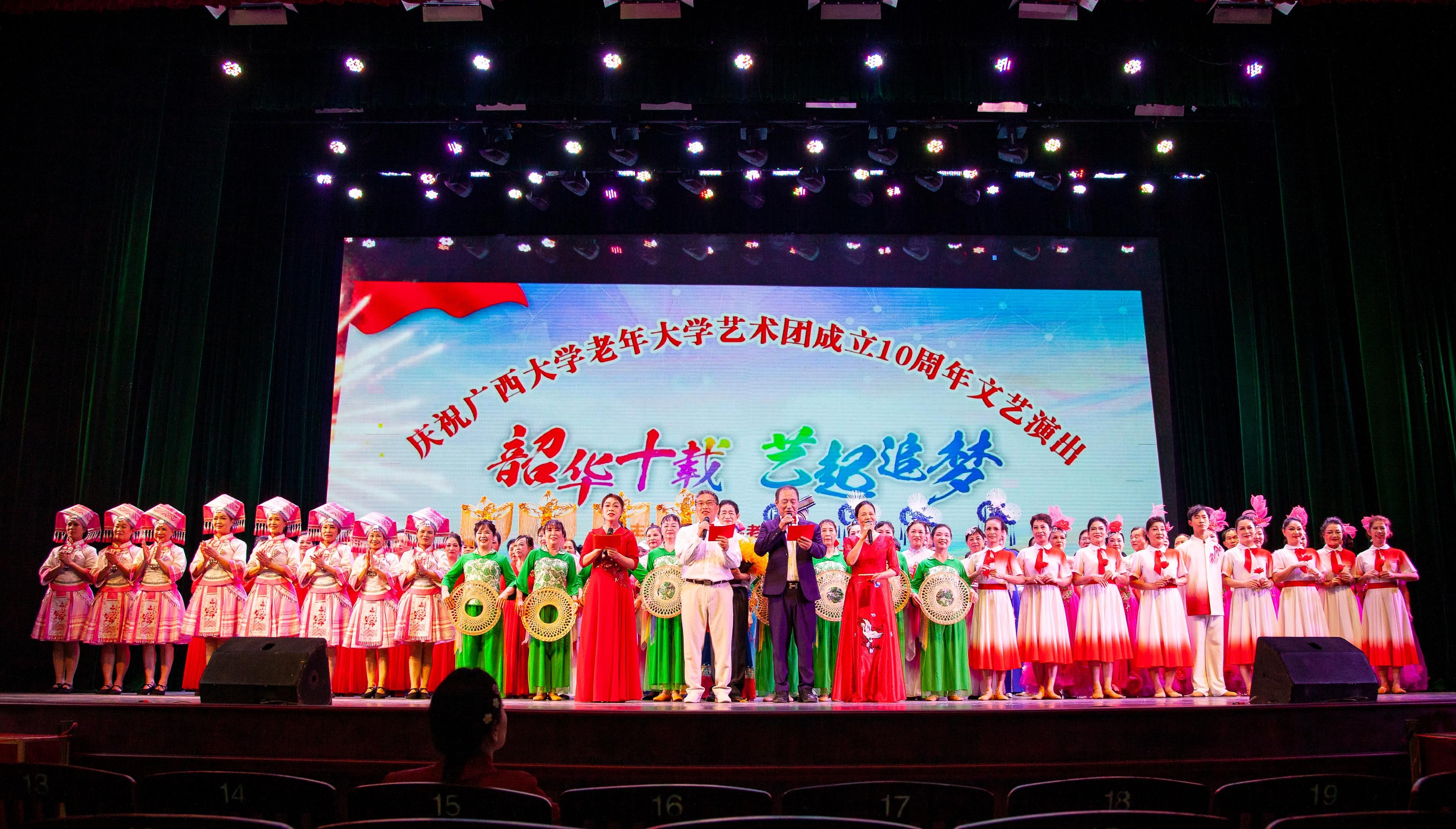 与会代表还观看了庆祝广西老年大学协会高校委员会成立一周年暨英国上市公司365老年大学艺术团成立十周年文艺演出。