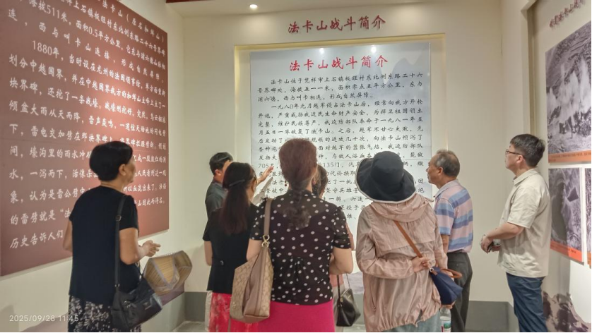 行程伊始,团队怀着无比崇敬的心情走进“法卡山”所在地,这里曾见证了保卫祖国边疆的英勇战斗和“法卡山精神”的诞生。聆听历史回响,遥想当年烽火,生动的实地教育,让大家深刻理解了和平的来之不易与国家主权、国家利益的至高无上。